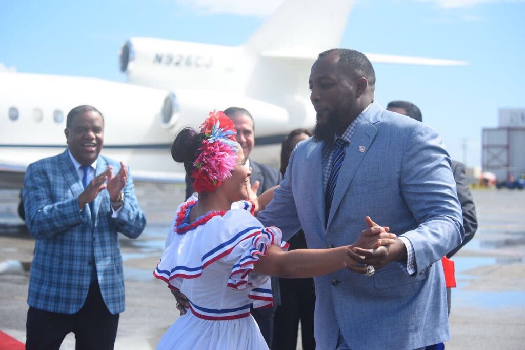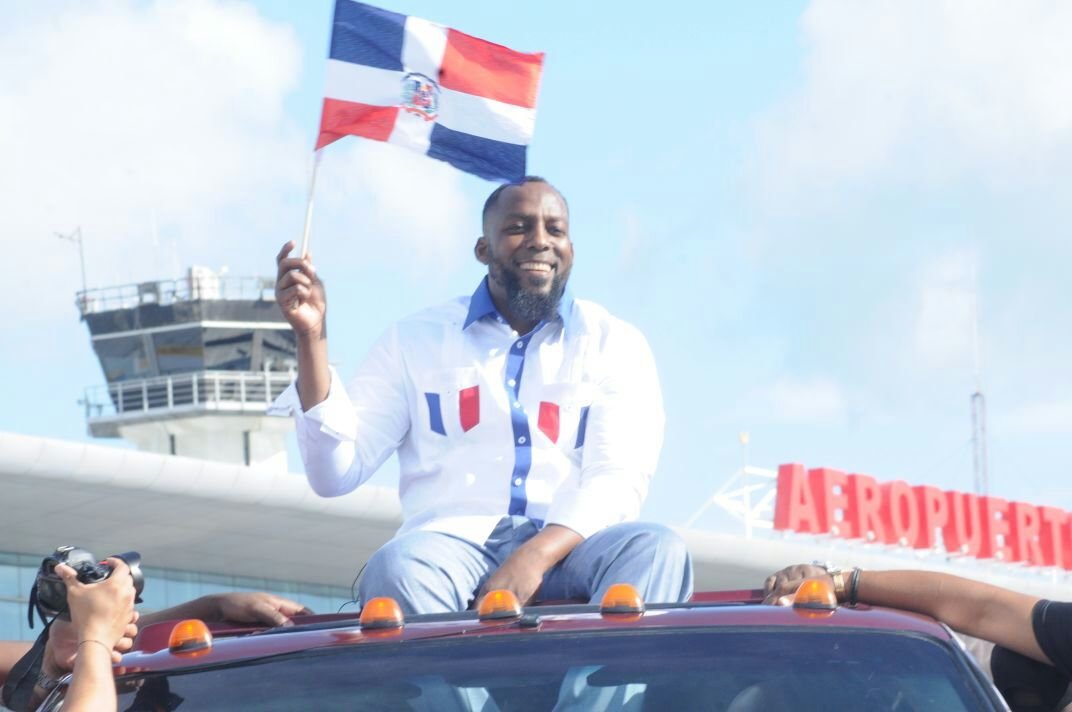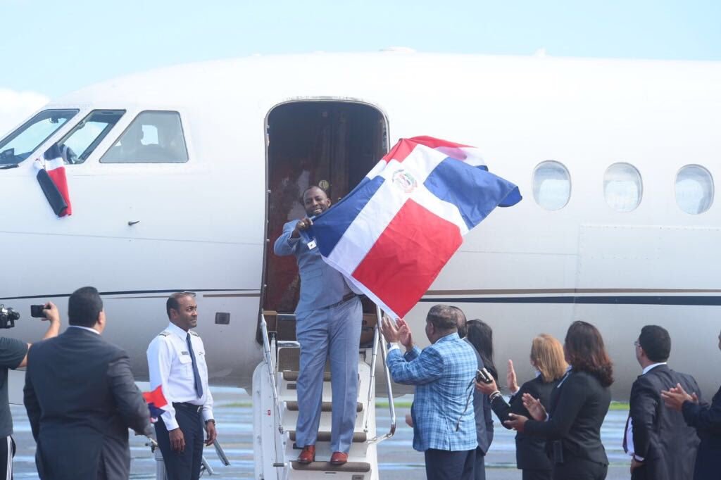 Tan pronto bajó las escalinatas del avión, con la bandera tricolor, el hombre de Don Gregorio se fajó a bailar un pimentoso merengue. #OrgulloDominicano pic.twitter.com/8LBU9DTdYE