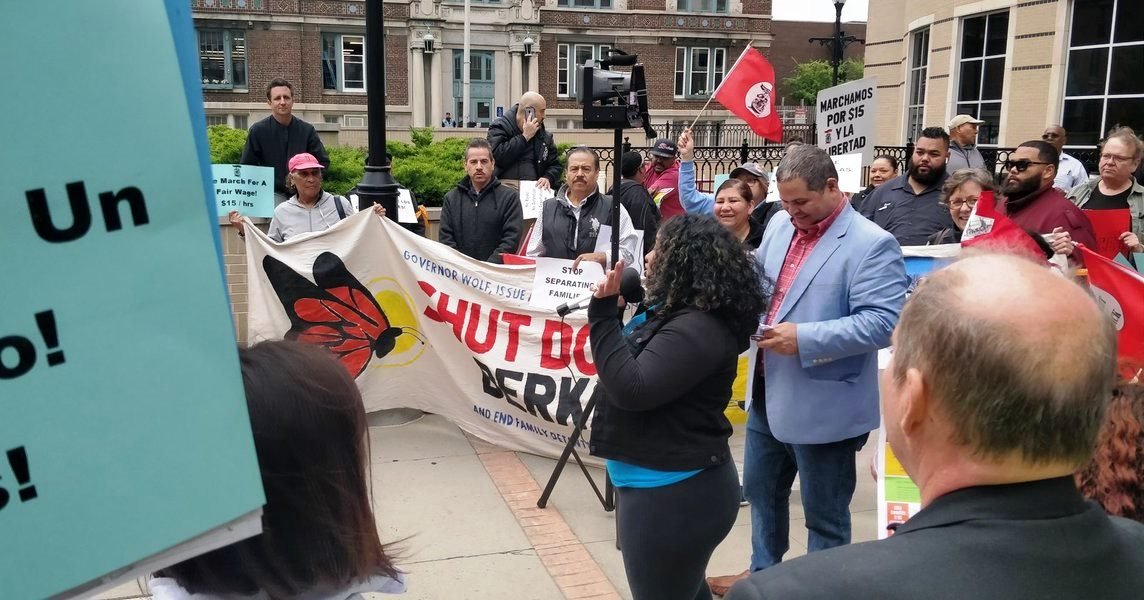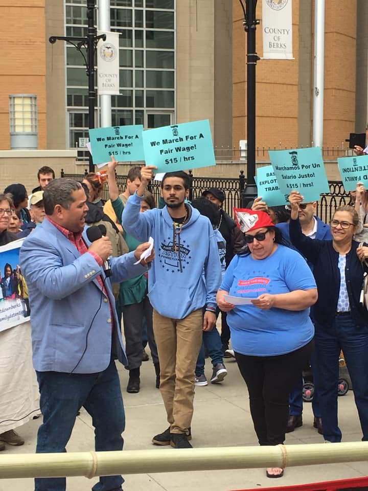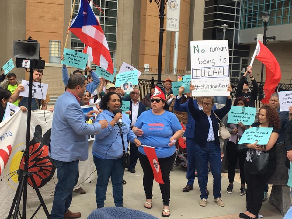 It’s #MayDay2019 in Reading and hundreds have gathered to stand up for immigrant and workers rights! #RaiseTheWagePA pic.twitter.com/FCx2DC5D7u