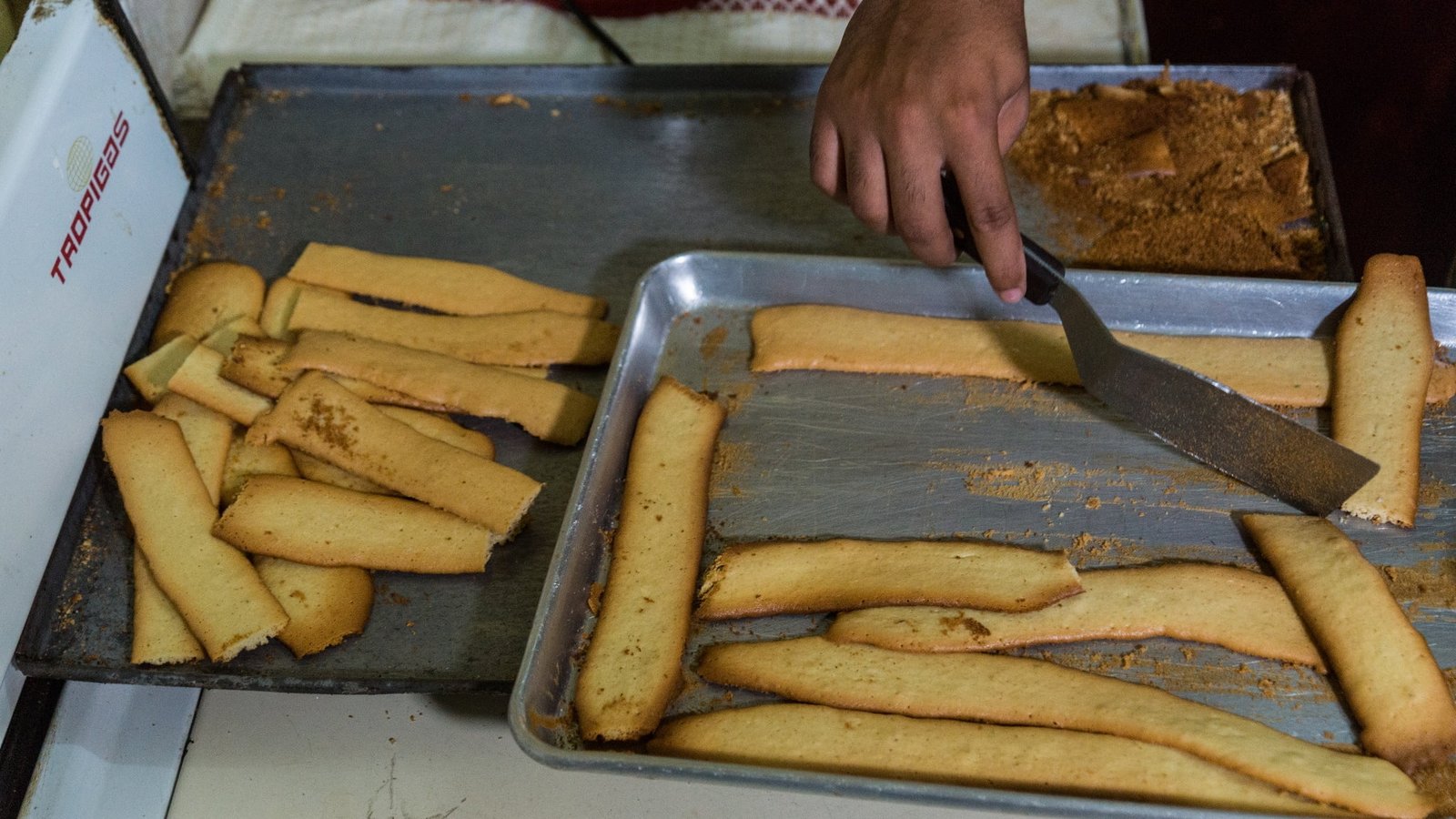 Elaboradas por mano de su creadora, estas crujientes galletas de mantecado parecidas a las llamadas “lengua” en la capital, dan seguidilla.