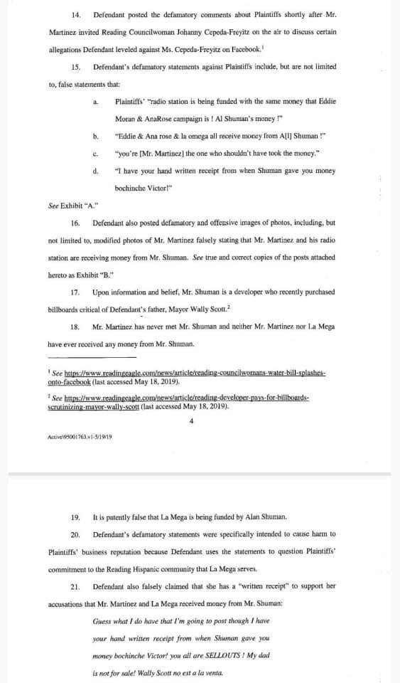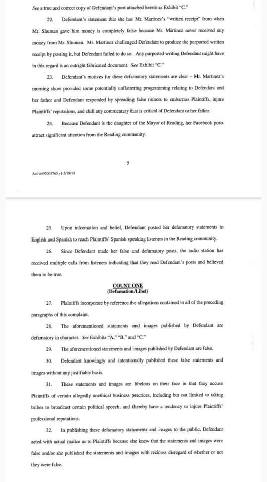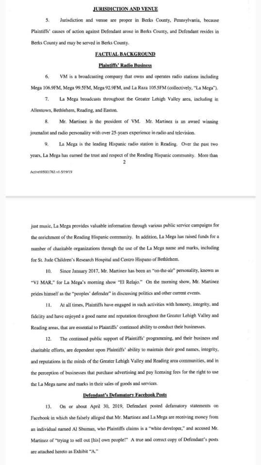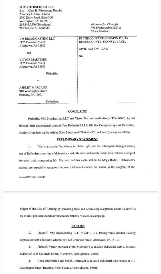 ALLENTOWN, Pensilvania.- Advertido, dicho y hecho. El presidente y propietario de la estación La Mega 92.9 Radio dio curso legal este lunes a una demanda de US$150,000 contra la señora Ashley Scott Marcano, hija del alcalde de la ciudad de Reading, por cargos de difamación pública.