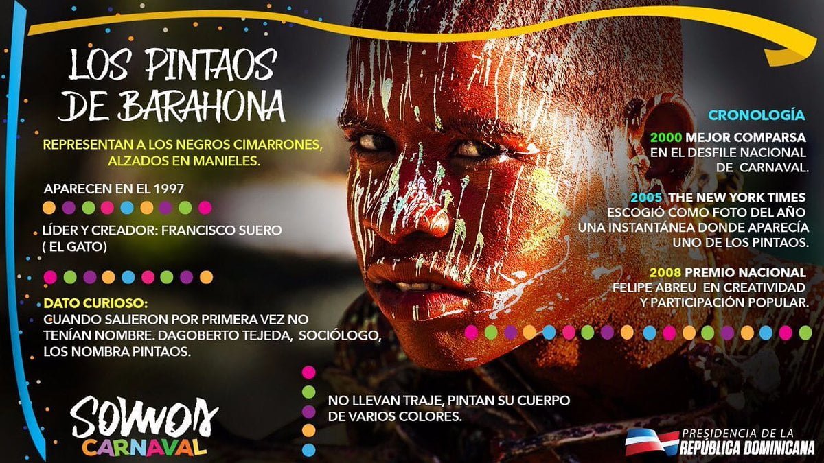 Los Pintaos provienen de los barrios de Barahona. Su primera aparición fue en 1997. Desde entonces, año tras año, han ganado premios. En 2005 el diario The New York Times escogió como foto del año una instantánea de su vistoso espectáculo.